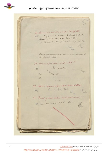 (٥٦٩/٥٢٠) [ﻭ٢٦٠] "ﺎﻳﺭﻼﻤﻟا ﺔﺤﻓﺎﻜﻣ ﺕاءاﺮﺟﺇ III 2/7 ﻒﻠﻣ" ٥٢٠ ﺔﺣﻮﺘﻔﻣ ﺔﻣﻮﻜﺣ ﺔﺼﺧﺭ :ﺮﺸﻨﻟا ﻖﺣ IOR/R/15/2/1062 :ﻊﺟﺮﻤﻟا http://www.qdl.qa/ﺔﻴﺑﺮﻌﻟا/archive/81055/vdc_100026187245.0x000079 :ﺔﻴﻤﻗﺮﻟا ﺮﻄﻗ ﺔﺒﺘﻜﻣ ﻰﻠﻋ ﺽﺮﻋا