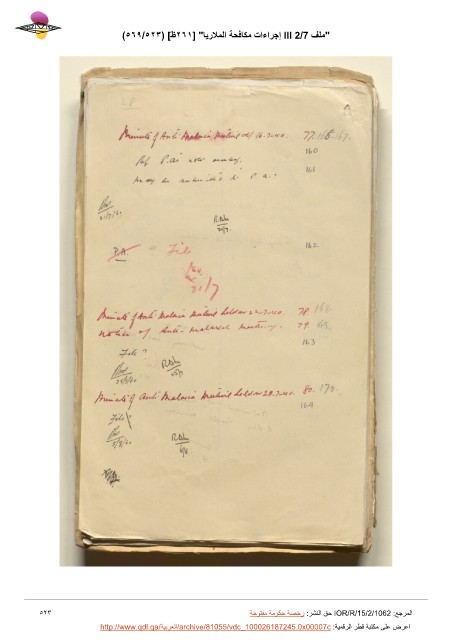 (٥٦٩/٥٢٣) [ﻅ٢٦١] "ﺎﻳﺭﻼﻤﻟا ﺔﺤﻓﺎﻜﻣ ﺕاءاﺮﺟﺇ III 2/7 ﻒﻠﻣ" ٥٢٣ ﺔﺣﻮﺘﻔﻣ ﺔﻣﻮﻜﺣ ﺔﺼﺧﺭ :ﺮﺸﻨﻟا ﻖﺣ IOR/R/15/2/1062 :ﻊﺟﺮﻤﻟا http://www.qdl.qa/ﺔﻴﺑﺮﻌﻟا/archive/81055/vdc_100026187245.0x00007c :ﺔﻴﻤﻗﺮﻟا ﺮﻄﻗ ﺔﺒﺘﻜﻣ ﻰﻠﻋ ﺽﺮﻋا
