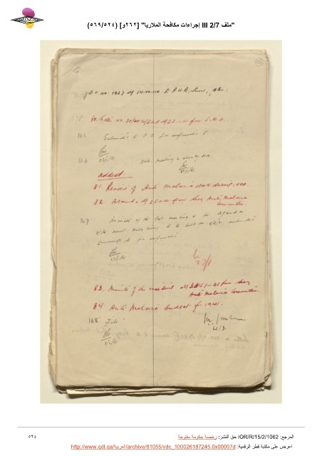 (٥٦٩/٥٢٤) [ﻭ٢٦٢] "ﺎﻳﺭﻼﻤﻟا ﺔﺤﻓﺎﻜﻣ ﺕاءاﺮﺟﺇ III 2/7 ﻒﻠﻣ" ٥٢٤ ﺔﺣﻮﺘﻔﻣ ﺔﻣﻮﻜﺣ ﺔﺼﺧﺭ :ﺮﺸﻨﻟا ﻖﺣ IOR/R/15/2/1062 :ﻊﺟﺮﻤﻟا http://www.qdl.qa/ﺔﻴﺑﺮﻌﻟا/archive/81055/vdc_100026187245.0x00007d :ﺔﻴﻤﻗﺮﻟا ﺮﻄﻗ ﺔﺒﺘﻜﻣ ﻰﻠﻋ ﺽﺮﻋا