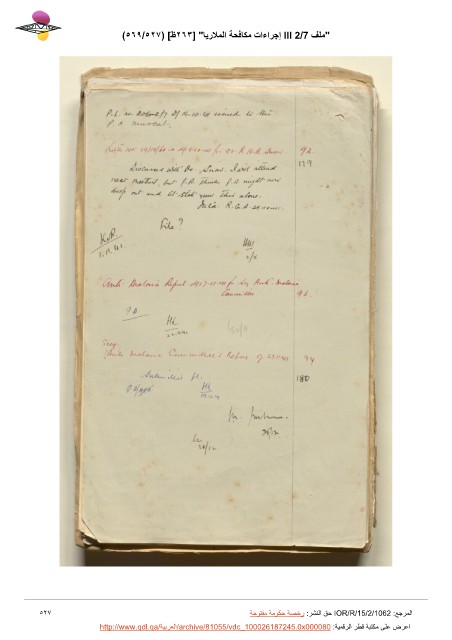(٥٦٩/٥٢٧) [ﻅ٢٦٣] "ﺎﻳﺭﻼﻤﻟا ﺔﺤﻓﺎﻜﻣ ﺕاءاﺮﺟﺇ III 2/7 ﻒﻠﻣ" ٥٢٧ ﺔﺣﻮﺘﻔﻣ ﺔﻣﻮﻜﺣ ﺔﺼﺧﺭ :ﺮﺸﻨﻟا ﻖﺣ IOR/R/15/2/1062 :ﻊﺟﺮﻤﻟا http://www.qdl.qa/ﺔﻴﺑﺮﻌﻟا/archive/81055/vdc_100026187245.0x000080 :ﺔﻴﻤﻗﺮﻟا ﺮﻄﻗ ﺔﺒﺘﻜﻣ ﻰﻠﻋ ﺽﺮﻋا