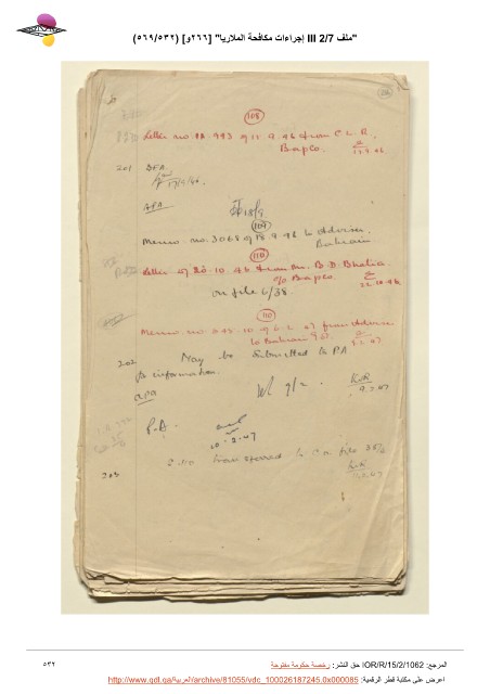 (٥٦٩/٥٣٢) [ﻭ٢٦٦] "ﺎﻳﺭﻼﻤﻟا ﺔﺤﻓﺎﻜﻣ ﺕاءاﺮﺟﺇ III 2/7 ﻒﻠﻣ" ٥٣٢ ﺔﺣﻮﺘﻔﻣ ﺔﻣﻮﻜﺣ ﺔﺼﺧﺭ :ﺮﺸﻨﻟا ﻖﺣ IOR/R/15/2/1062 :ﻊﺟﺮﻤﻟا http://www.qdl.qa/ﺔﻴﺑﺮﻌﻟا/archive/81055/vdc_100026187245.0x000085 :ﺔﻴﻤﻗﺮﻟا ﺮﻄﻗ ﺔﺒﺘﻜﻣ ﻰﻠﻋ ﺽﺮﻋا