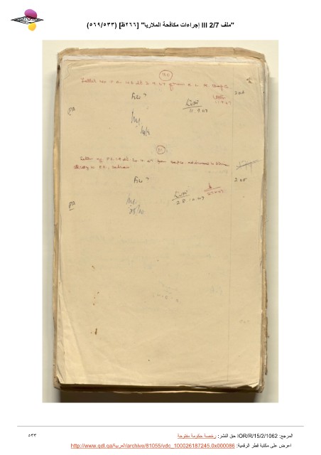 (٥٦٩/٥٣٣) [ﻅ٢٦٦] "ﺎﻳﺭﻼﻤﻟا ﺔﺤﻓﺎﻜﻣ ﺕاءاﺮﺟﺇ III 2/7 ﻒﻠﻣ" ٥٣٣ ﺔﺣﻮﺘﻔﻣ ﺔﻣﻮﻜﺣ ﺔﺼﺧﺭ :ﺮﺸﻨﻟا ﻖﺣ IOR/R/15/2/1062 :ﻊﺟﺮﻤﻟا http://www.qdl.qa/ﺔﻴﺑﺮﻌﻟا/archive/81055/vdc_100026187245.0x000086 :ﺔﻴﻤﻗﺮﻟا ﺮﻄﻗ ﺔﺒﺘﻜﻣ ﻰﻠﻋ ﺽﺮﻋا