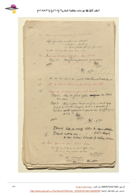 (٥٦٩/٥٣٦) [ﻭ٢٦٨] "ﺎﻳﺭﻼﻤﻟا ﺔﺤﻓﺎﻜﻣ ﺕاءاﺮﺟﺇ III 2/7 ﻒﻠﻣ" ٥٣٦ ﺔﺣﻮﺘﻔﻣ ﺔﻣﻮﻜﺣ ﺔﺼﺧﺭ :ﺮﺸﻨﻟا ﻖﺣ IOR/R/15/2/1062 :ﻊﺟﺮﻤﻟا http://www.qdl.qa/ﺔﻴﺑﺮﻌﻟا/archive/81055/vdc_100026187245.0x000089 :ﺔﻴﻤﻗﺮﻟا ﺮﻄﻗ ﺔﺒﺘﻜﻣ ﻰﻠﻋ ﺽﺮﻋا