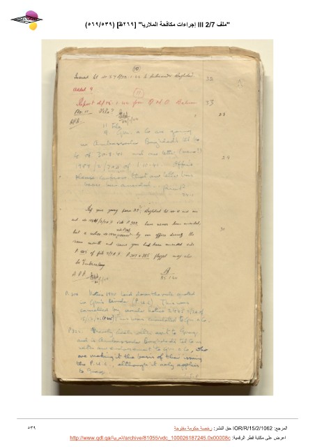(٥٦٩/٥٣٩) [ﻅ٢٦٩] "ﺎﻳﺭﻼﻤﻟا ﺔﺤﻓﺎﻜﻣ ﺕاءاﺮﺟﺇ III 2/7 ﻒﻠﻣ" ٥٣٩ ﺔﺣﻮﺘﻔﻣ ﺔﻣﻮﻜﺣ ﺔﺼﺧﺭ :ﺮﺸﻨﻟا ﻖﺣ IOR/R/15/2/1062 :ﻊﺟﺮﻤﻟا http://www.qdl.qa/ﺔﻴﺑﺮﻌﻟا/archive/81055/vdc_100026187245.0x00008c :ﺔﻴﻤﻗﺮﻟا ﺮﻄﻗ ﺔﺒﺘﻜﻣ ﻰﻠﻋ ﺽﺮﻋا