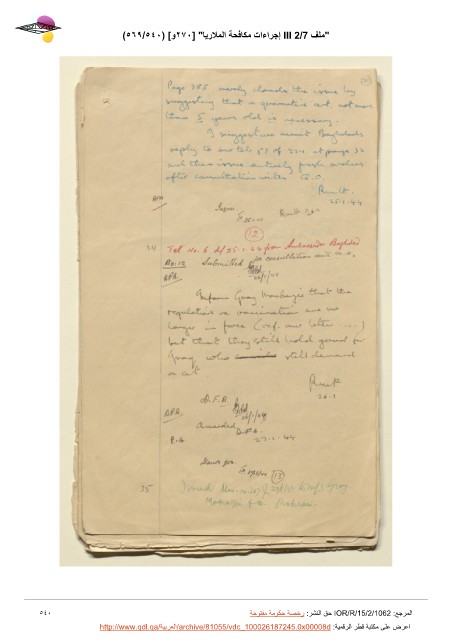 (٥٦٩/٥٤٠) [ﻭ٢٧٠] "ﺎﻳﺭﻼﻤﻟا ﺔﺤﻓﺎﻜﻣ ﺕاءاﺮﺟﺇ III 2/7 ﻒﻠﻣ" ٥٤٠ ﺔﺣﻮﺘﻔﻣ ﺔﻣﻮﻜﺣ ﺔﺼﺧﺭ :ﺮﺸﻨﻟا ﻖﺣ IOR/R/15/2/1062 :ﻊﺟﺮﻤﻟا http://www.qdl.qa/ﺔﻴﺑﺮﻌﻟا/archive/81055/vdc_100026187245.0x00008d :ﺔﻴﻤﻗﺮﻟا ﺮﻄﻗ ﺔﺒﺘﻜﻣ ﻰﻠﻋ ﺽﺮﻋا
