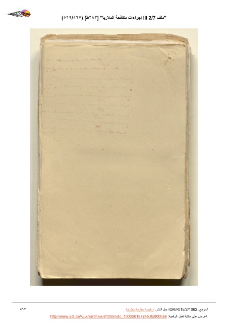 (٥٦٩/٥٦٧) [ﻅ٢٨٣] "ﺎﻳﺭﻼﻤﻟا ﺔﺤﻓﺎﻜﻣ ﺕاءاﺮﺟﺇ III 2/7 ﻒﻠﻣ" ٥٦٧ ﺔﺣﻮﺘﻔﻣ ﺔﻣﻮﻜﺣ ﺔﺼﺧﺭ :ﺮﺸﻨﻟا ﻖﺣ IOR/R/15/2/1062 :ﻊﺟﺮﻤﻟا http://www.qdl.qa/ﺔﻴﺑﺮﻌﻟا/archive/81055/vdc_100026187245.0x0000a8 :ﺔﻴﻤﻗﺮﻟا ﺮﻄﻗ ﺔﺒﺘﻜﻣ ﻰﻠﻋ ﺽﺮﻋا