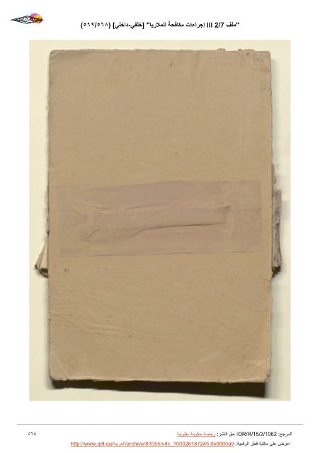 (٥٦٩/٥٦٨) [ﻲﻠﺧاﺩ-ﻲﻔﻠﺧ] "ﺎﻳﺭﻼﻤﻟا ﺔﺤﻓﺎﻜﻣ ﺕاءاﺮﺟﺇ III 2/7 ﻒﻠﻣ" ٥٦٨ ﺔﺣﻮﺘﻔﻣ ﺔﻣﻮﻜﺣ ﺔﺼﺧﺭ :ﺮﺸﻨﻟا ﻖﺣ IOR/R/15/2/1062 :ﻊﺟﺮﻤﻟا http://www.qdl.qa/ﺔﻴﺑﺮﻌﻟا/archive/81055/vdc_100026187245.0x0000a9 :ﺔﻴﻤﻗﺮﻟا ﺮﻄﻗ ﺔﺒﺘﻜﻣ ﻰﻠﻋ ﺽﺮﻋا