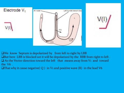 That why it cause negative( Q ) in V1 and positive wave (R) in the lead V6