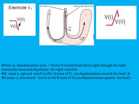 It cause a upward notch in the Q wave of V1 (as depolarization toward the lead ) &