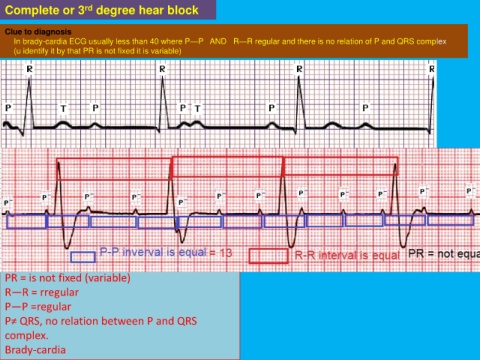 In brady-cardia ECG usually less than 40 where P—P AND R—R regular and there is no relation of P and QRS complex