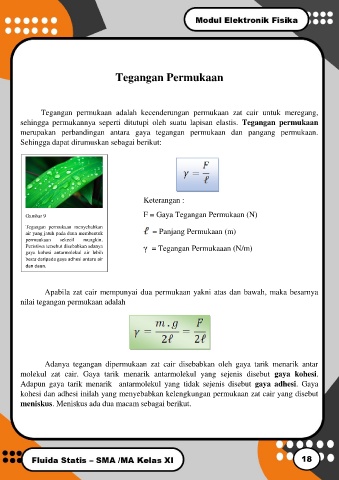 Peristiwa tersebut disebabkan adanya γ = Tegangan Permukaaan (N/m)