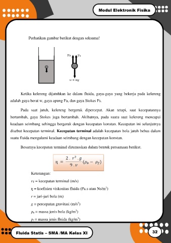 bertambah, gaya Stokes juga bertambah. Akibatnya, pada suatu saat kelereng mencapai