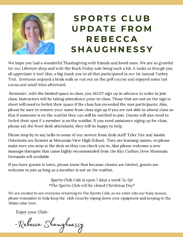 *The Sports Club will be closed Christmas Day*