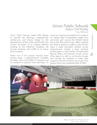 development of their indoor golf facility. The  along with their school logo. When students   featured  projects