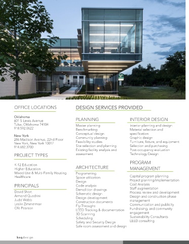 Tulsa, Oklahoma 74104 Master planning Interior planning and design