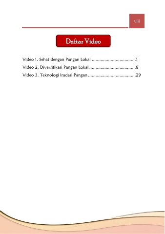 viii Daftar Video Video 1. Sehat dengan Pangan Lokal ...................................1 Video 2. Diversifikasi Pangan Lokal .....................................8 Video 3. Teknologi Iradasi Pangan ......................................29