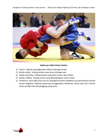 5) Sambovka : jenis jaket atau kimono yang dipakai dalam pelatihan atau perlombaan Sambo
