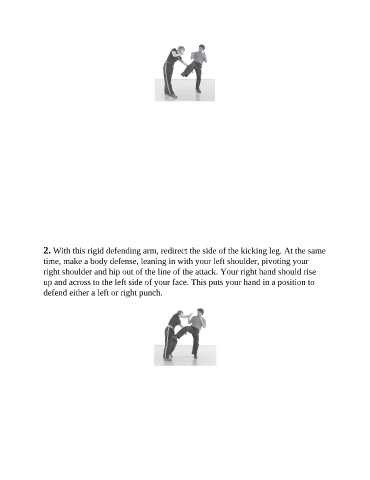 2. With this rigid defending arm, redirect the side of the kicking leg. At the same