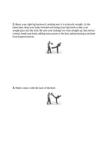 weight goes into the kick. Be sure your kicking foot rises straight up. Just before