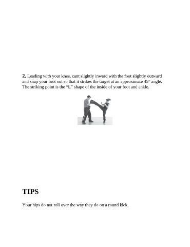 and snap your foot out so that it strikes the target at an approximate 45° angle.