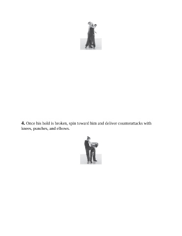 4. Once his hold is broken, spin toward him and deliver counterattacks with knees, punches, and elbows.