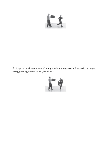 2. As your head comes around and your shoulder comes in line with the target, bring your right knee up to your chest.
