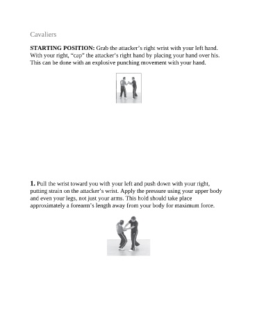 putting strain on the attacker’s wrist. Apply the pressure using your upper body