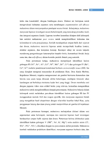 sama tim, dan self-efficacy dalam konteks praktik ilmiah yang autentik.