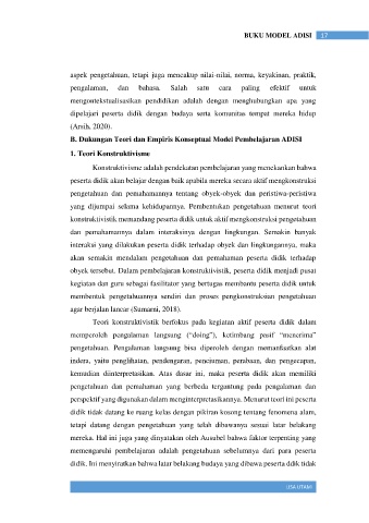 B. Dukungan Teori dan Empiris Konseptual Model Pembelajaran ADISI