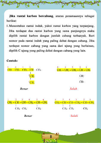 Jika rantai karbon bercabang, aturan penamaannya sebagai