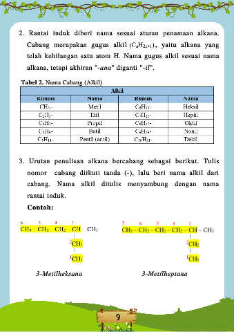 ......cabang. Nama alkil ditulis menyambung dengan nama