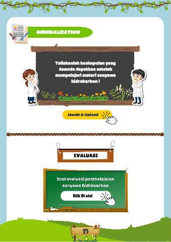 GENERALIZATION Tuliskanlah kesimpulan yang Ananda dapatkan setelah mempelajari materi senyawa hidrokarbon ! Jawab & Upload Jawab & Upload EVALUASI 25