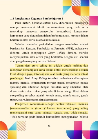 pendengar.  Dari  Story  Telling  tersebut  mahasiswa  diharapkan