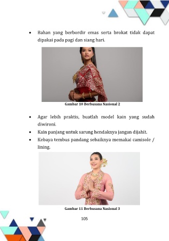 • Kebaya tembus pandang sebaiknya memakai camisole /