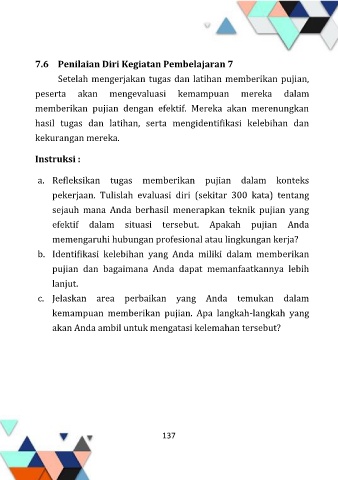 a. Refleksikan tugas memberikan pujian dalam konteks