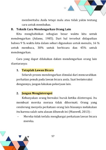 mendengarkan (Adams, 1985). Dari hal tersebut didapatkan