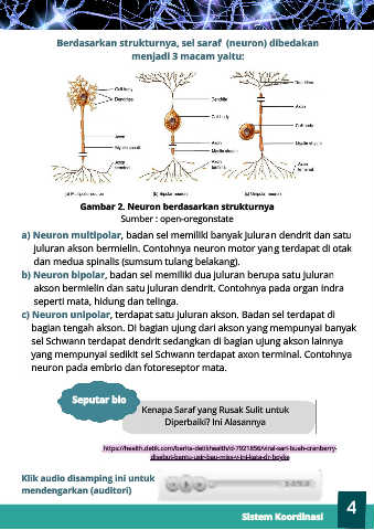 Berdasarkan strukturnya, sel saraf (neuron) dibedakan