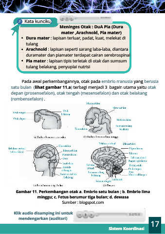 Gambar 11. Perkembangan otak a. Embrio satu bulan ; b. Embrio lima