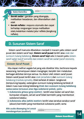 Sistem saraf pusat terdiri atas otak (ensefalon) dan sumsum tulang