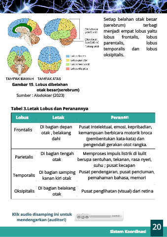 Di bagian samping           Pusat pendengaran, pusat penciuman,