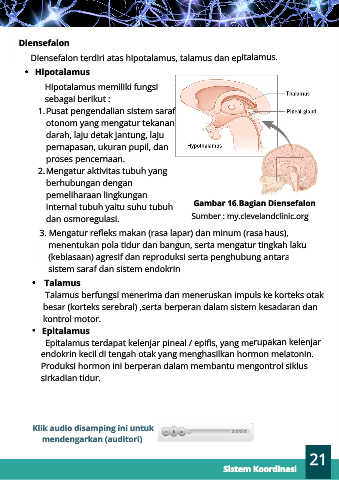 internal tubuh yaitu suhu tubuh                     Gambar 16.Bagian Diensefalon