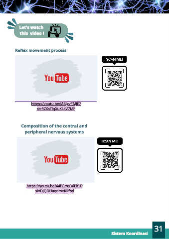 Let's watch this video ! Reflex movement process https://youtu.be/jA6IgvFAfJE? si=RZXsTIqXuKLkV7MF Composition of the central and peripheral nervous systems https://youtu.be/44B0ms3XPKU? si=DjQDHaqomeKIIfpd 31 Sistem Koordinasi
