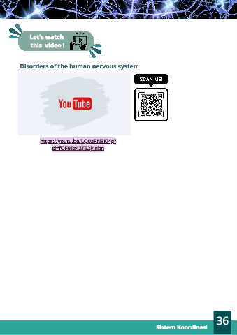 Let's watch this video ! Disorders of the human nervous system https://youtu.be/LQ0aRN3Ki4g? si=fOF9Tz42T52j4nbn 36 Sistem Koordinasi