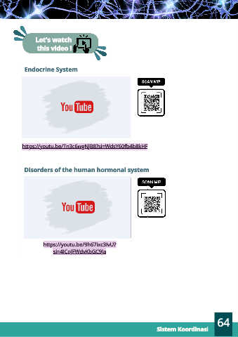 Let's watch this video ! Endocrine System https://youtu.be/Tn3c6wgNjB8?si=WdsY60fb4b8kHF Disorders of the human hormonal system https://youtu.be/9h67ixc3IvU? si=4ICoJFWdvKbGC9Ja 64 Sistem Koordinasi