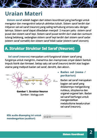 Sel saraf (neuron) merupakan unit fungsional sistem saraf yang