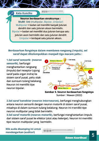 Berdasarkan fungsinya dalam membawa rangsang (impuls), sel