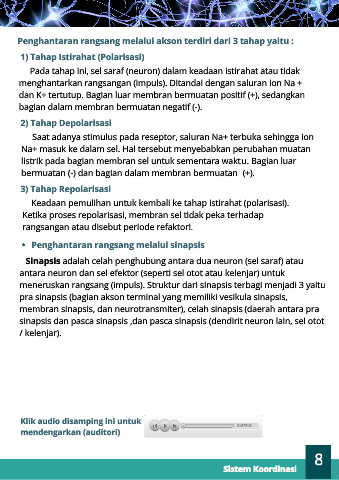 Penghantaran rangsang melalui akson terdiri dari 3 tahap yaitu :