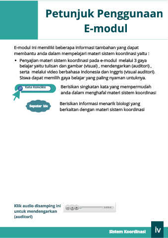 Penyajian materi sistem koordinasi pada e-modul melalui 3 gaya