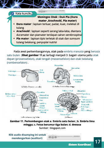 Gambar 11. Perkembangan otak a. Embrio satu bulan ; b. Embrio lima
