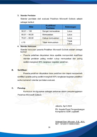 Standar kelulusan peserta Pelatihan Microsoft Outlook adalah sebagai